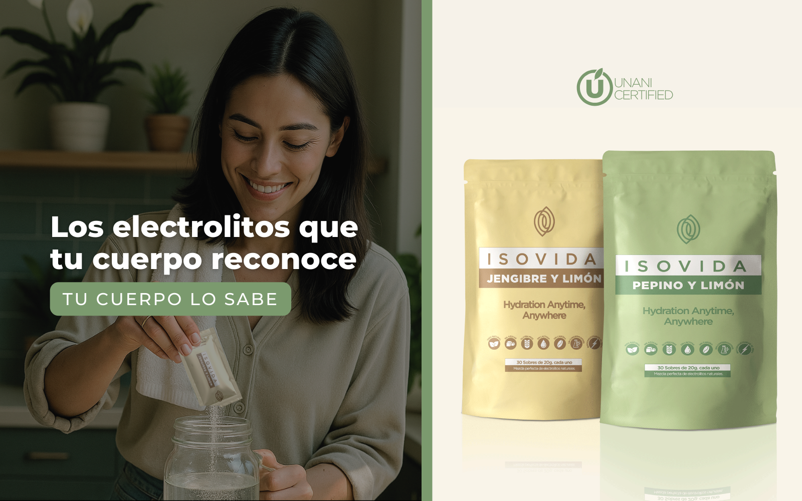 La combinación de pepino fresco y limón natural convierte cada sobre de Isovida en una pausa de pureza. Suave, ligera, profundamente refrescante. Son electrolitos diseñados para hidratarte desde adentro, sin azúcar, sin químicos, sin adornos.